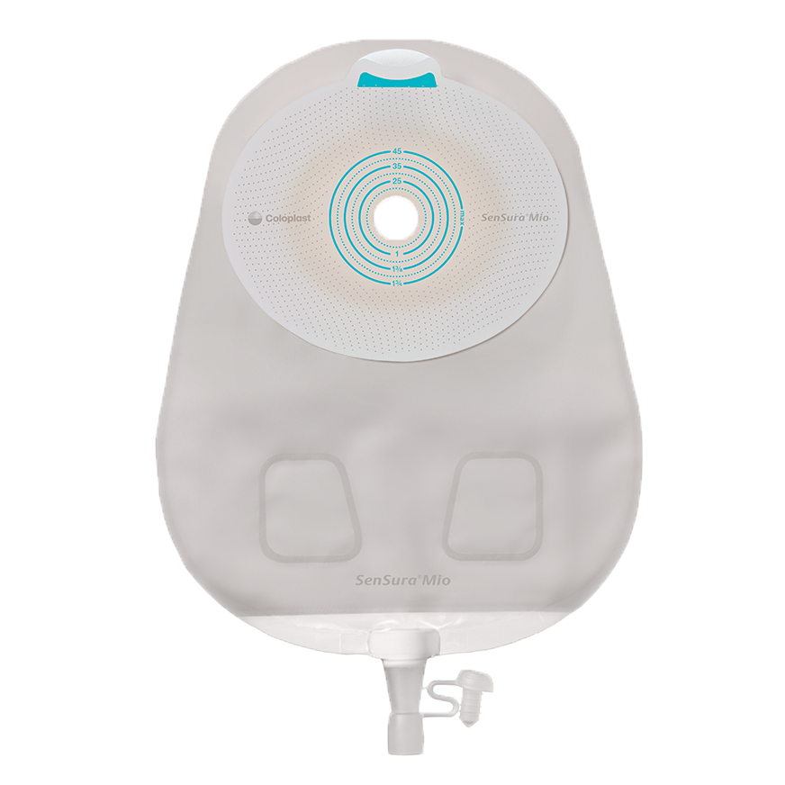 הדבק האלסטי של שקית סנסורה מיו אורוסטומי בחלק אחד מקובע לשקית באופן קבוע. להחלפת השקית יש להסיר את כל הציוד ולהחליפו באחר. סנסורה מיו אורוסטומי בחלק אחד זמין במגוון רחב של בסיסים שטוחים המורכב מגדלים חתוכים מראש או גדלי פתחים הניתנים להתאמה אישית, עם שקיות במגוון מידות בצבע שקוף או אפור נייטרלי.